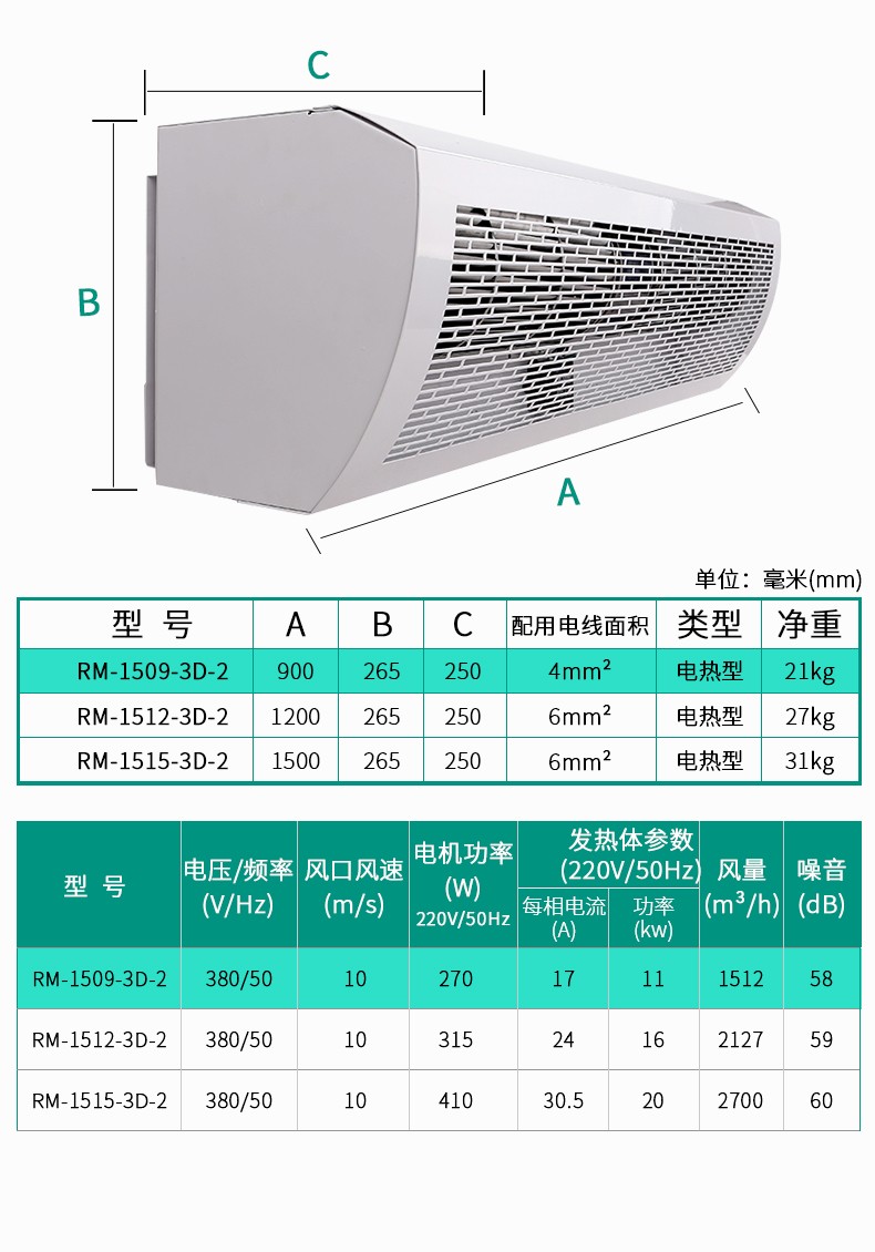 大風量貫流電熱風幕機
